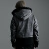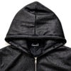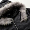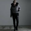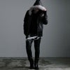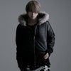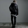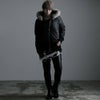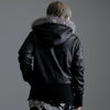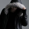 退廃的な美しさを演出したコーティング加工の光沢感に、アニマル柄のようなムラ染めをプラスして 本物のレザーを思わせる表面感を実現したハイエンドなファー付きジップアップパーカーです。