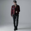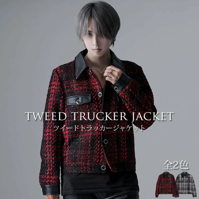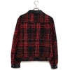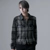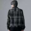 ラメ糸を使ったツイード素材と合成皮革で切り替えたショート丈ブルゾンです。