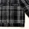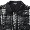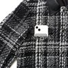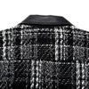 キラキラと光るツイード素材と切り替えのフェイクレザーが高級感ある雰囲気。
