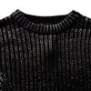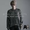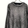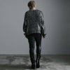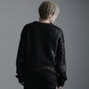 ブラックの厚手ニットにブラック箔、シルバー箔をそれぞれ全面に配置した2色の長袖プルオーバーニットです。