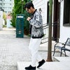 シンプルなトップスと合わせても素材の表情が際立ち、コーディネートのアクセントに。