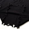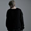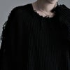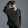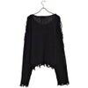 ざっくりとした透かし編みのボディに、随所に施されたフリンジ状のダメージ加工。