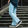 脚のラインをきれいに見せてくれる裾の広がったフレアデニムパンツ。
