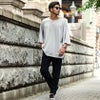 前後差をつけた着丈とスリットによって動きが生まれ、生地のドレープ感と組み合わさることでこのカットソーでしか作りだせない独特な雰囲気が生まれます。