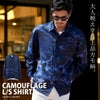 全面にほどこされた迷彩の総柄デザインで存在感を放つ長袖シャツ。