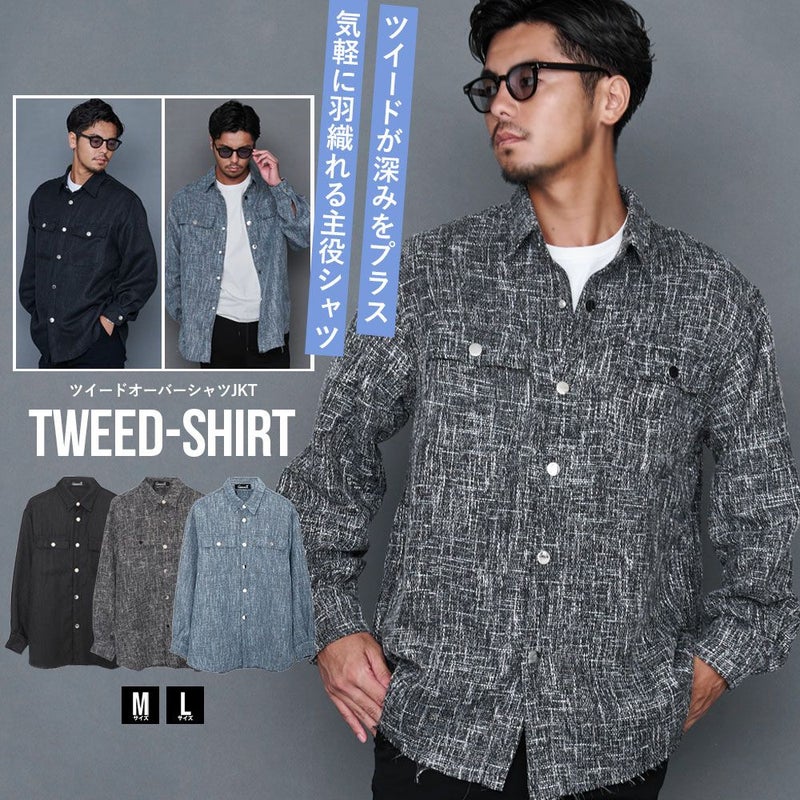 ジャケット メンズ シャツジャケット 長袖シャツ ツイード おしゃれ ブルゾン ネルシャツ CPO CPOジャケット トップス ライトアウター 大きいサイズ オーバーサイズ ブラック ブルー グレー 黒 M L CavariA ユニセックス 男性 男 服 春 秋 冬 秋冬 メンズファッション 20代 30代 40代 父の日 東京 プレゼント 誕生日 記念日 贈り物 ギフト