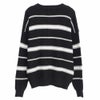リブ編みのデザインでシンプルなボーダーヘンリーニット。