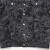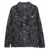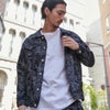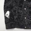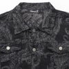 淡いカラーのデニムにペイズリー柄のダメージ加工を施したデザインジャケットです。