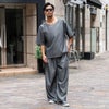 やや広めのネックラインやサイドスリットを取り入れたデザインが、抜け感のあるスタイリングを演出します。