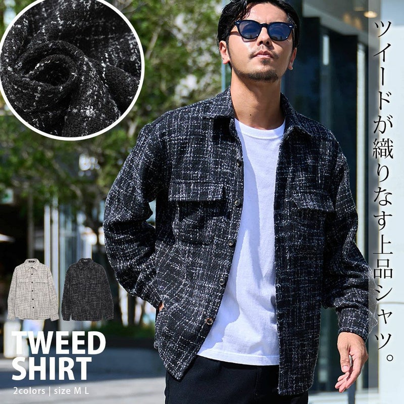 シャツ メンズ 長袖 長袖シャツ ブランド おしゃれ ツイードシャツ シャツジャケット 羽織り トップス インナー レギュラーカラー チェック柄 ポケット ビッグシルエット オーバーサイズ 大きいサイズ ゆったり 暖かい 防寒 ホワイト ブラック 白 黒 M L LL XL CavariA キャバリア 大人 アメカジ カジュアル ストリート ストリート系 韓国 韓国系 韓国ファッション 下北沢 下北系 古着 古着系 90s 90年代 2000年代 Y2K ユニセックス 男女兼用 ペア カップル 服 秋 冬 秋服 冬服 男性 男 父の日 父の日ギフト 父の日プレゼント 20代 30代 40代 ファッション メンズファッション 東京 プレゼント 誕生日 記念日 贈り物 ギフト