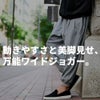CavariAならではの遊び心を感じさせるワイドジョガーパンツ。