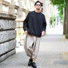 スラックスの上質感とサルエルパンツの個性を融合させた、他にはない仕上がりの一本です。