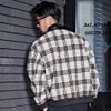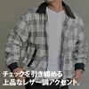 上品なチェック柄とレザー調素材の切り替えが目を惹く、存在感抜群のチェックジャケットです。