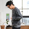 ヒョウ柄を総柄で編み込んだ存在感抜群のクルーネックニット。