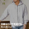 ユニセックスでも着用可能な、汎用性の高い定番ジップアップパーカーです。