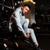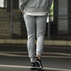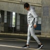 サイドジップが付いたパーカーはデザイン性と動きやすさを兼ね備え、細身のパンツはブランドラバーロゴと刺繍のみのシンプルデザイン。