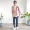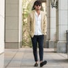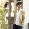 フロントのボタンがなくすっきりとしたデザインとリラックス感のあるカーディガン。