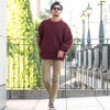 首元は襟のあるシャツやハイネックとも重ね着しやすいクルーネック。