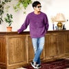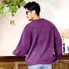 ゆったりとしたオーバーサイズで、ふわふわとした毛足の長いフェザーヤーン糸を使用したプルオーバーニット。