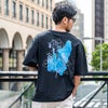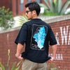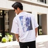 背面に大胆にあしらわれたアートライクな花柄プリントが目を惹く、主役級の半袖Tシャツ。