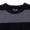 羽毛のようにふわふわとした長い毛足が特徴のフェザーヤーンニット素材を使用したボーダー柄のセーター。