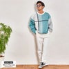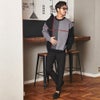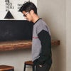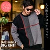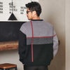 大胆な切り替えデザインが1枚でコーディネートの主役になるクルーネックニット。