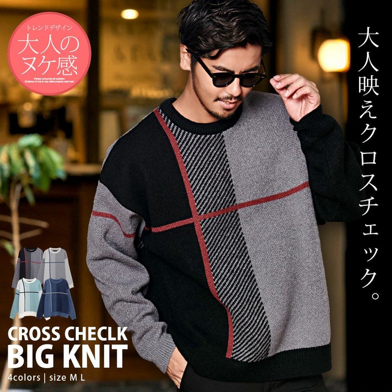 ニット セーター メンズ 長袖 ブランド おしゃれ 大きいサイズ トップス クルーネック チェック柄 配色 切り替え 切替 ビッグシルエット オーバーサイズ ゆったり 暖かい 防寒 ストレッチ 伸縮性 ユニセックス レディース 男女兼用 オフホワイト ブルー ブラック 白 青 黒 M L CavariA キャバリア 大人 上品 きれいめ カジュアル ストリート ストリート系 韓国 韓国系 韓国ファッション 下北沢 下北系 古着 古着系 90s 90年代 2000年代 Y2K 服 秋 冬 秋服 冬服 男性 男 父の日 父の日ギフト 父の日プレゼント 20代 30代 40代 ファッション メンズファッション 東京 プレゼント 誕生日 記念日 贈り物 ギフト