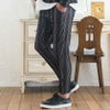 ※モデル画像は照明などの影響により実際の商品と異なる場合がございます。【ストライプ柄 ボトムス イージーパンツ 細身 スリム セットアップ可 ホワイト ブラック 白 黒 カジュアル きれいめ M L 春 夏 2020】