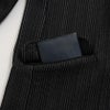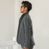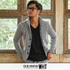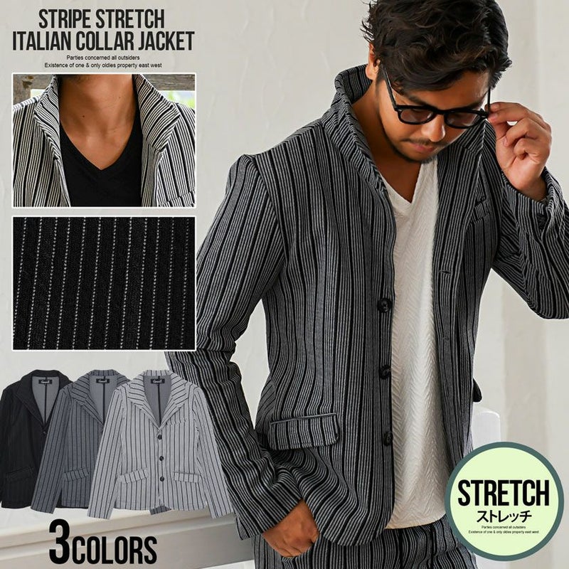 上品なストライプ柄を全体に施したイタリアンカラージャケット。