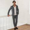 イタリアンカラーで大人っぽく上品な雰囲気に仕上げ、着る人を選ばない落ち着いた仕上がりに。