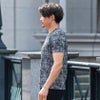 表面にモザイクチェック柄を施した生地感が上品で贅沢な雰囲気を演出する半袖Tシャツ。