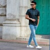 モザイクジャガード柄の生地感が贅沢な雰囲気を演出してくれる半袖ポロシャツ。