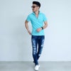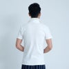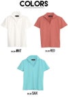 襟元が開いたスキッパータイプの半袖ポロシャツ。