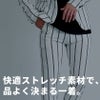 また、同素材を使用した「ストライプ柄ストレッチテーラードジャケット【CAST22-30】」も展開しており、セットアップでの着用もおすすめ。