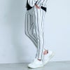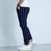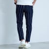 ストレッチ性に優れた快適な穿き心地と、スタイルを引き締めるストライプ柄が魅力のCavariAのアンクルパンツ。