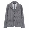 立体的な凹凸のあるストライプ柄を表面にほどこした生地感が贅沢な雰囲気を演出してくれるジャケット。
