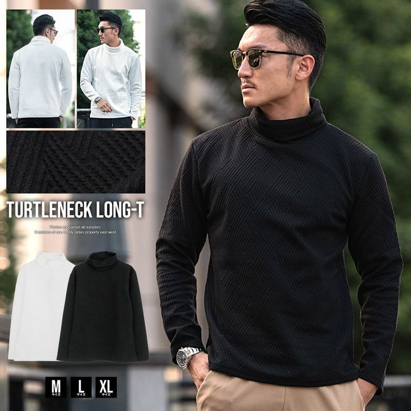 ロンT メンズ Tシャツ 長袖 長袖Tシャツ タートルネック キルティング カットソー おしゃれ ブラック ホワイト 黒 白 M L XL CavariA キャバリア ブランド ストリート ストリート系 カジュアル 春 秋 冬 男性 男 父の日 父の日ギフト 父の日プレゼント 20代 30代 40代 メンズファッション 東京 プレゼント 誕生日 記念日 贈り物 ギフト