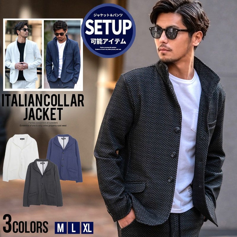 ジャケット メンズ おしゃれ テーラードジャケット イタリアンカラー セットアップ可 長袖 ふくれ生地 カジュアル ホワイト ブラック ネイビー 黒 白 M L XL きれいめ 服 CavariA 服 春 夏 ファッション メンズファッション 20代 30代 40代 父の日 東京 プレゼント 誕生日 記念日 贈り物 ギフト
