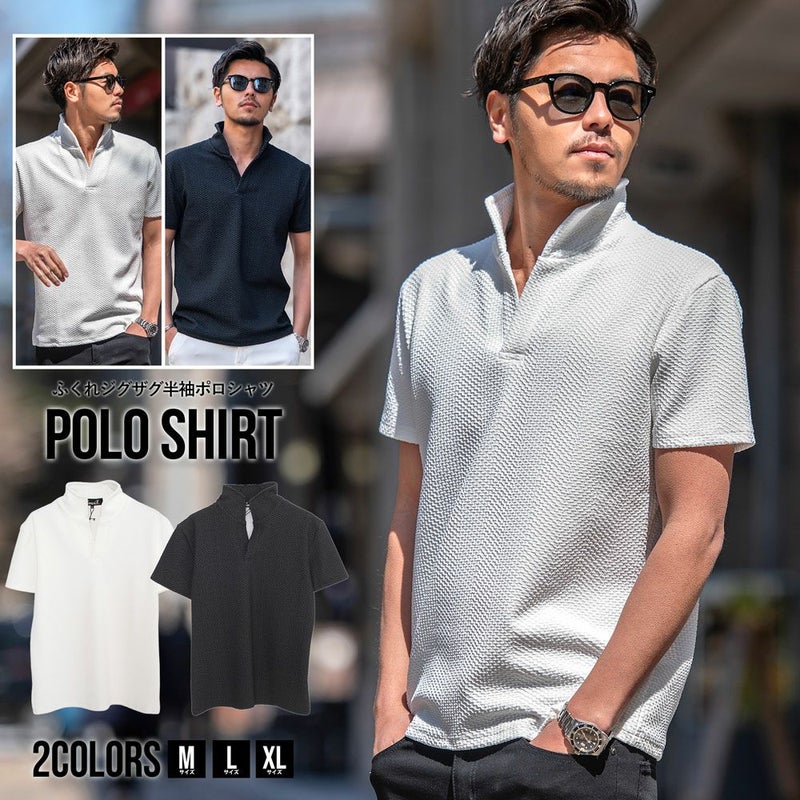 ポロシャツ メンズ ブランド おしゃれ 半袖 トップス カットソー インナー スキッパーカラー イタリアンカラー 立ち襟 ジャガード ジグザグ柄 無地 シンプル 細身 スリム タイト ストレッチ 伸縮性 ユニセックス レディース ホワイト ブラック 白 黒 M L XL CavariA キャバリア 大人 きれいめ キレカジ ビジネス ビジカジ カジュアル ストリート ストリート系 韓国 韓国系 韓国ファッション 下北沢 下北系 古着 古着系 90s 90年代 2000年代 Y2K 服 春 夏 春服 夏服 男性 男 父の日 父の日ギフト 父の日プレゼント 20代 30代 40代 ファッション メンズファッション 東京 プレゼント 誕生日 記念日 贈り物 ギフト
