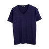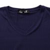 凹凸のあるストライプ柄を表面にほどこした生地感のVネックTシャツ。