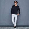 程よく開いたVネックはすっきりとした色気のある首元に魅せてくれます。