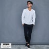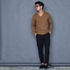 程よく開いたVネックはすっきりとした色気のある首元に魅せてくれます。