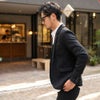 表面に凹凸のある織り目が特徴の柄を使用したニットソーテーラードジャケット。