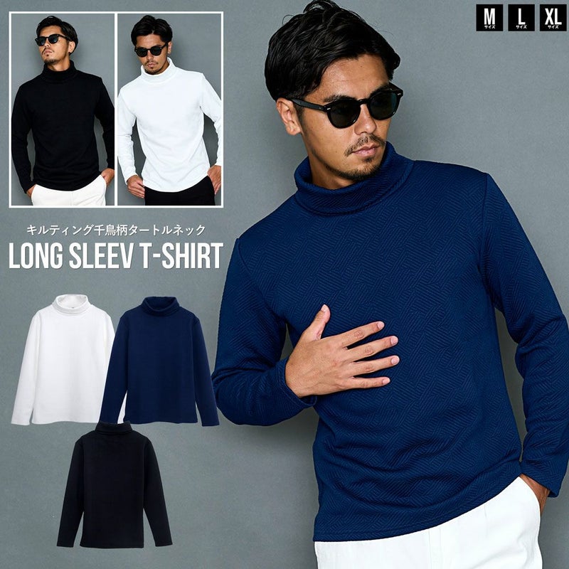 Tシャツ メンズ 長袖 長袖Tシャツ ロンT ブランド おしゃれ キルティング 千鳥柄 トップス カットソー インナー タートルネック 無地 大きいサイズ ゆったり ストレッチ 伸縮性 ユニセックス レディース 男女兼用 ホワイト ネイビー ブラック 白 紺 黒 M L XL CavariA キャバリア 大人 上品 きれいめ モード カジュアル ストリート ストリート系 韓国 韓国系 韓国ファッション 下北沢 下北系 古着 古着系 90s 90年代 2000年代 Y2K 服 秋 冬 秋服 冬服 男性 男 父の日 父の日ギフト 父の日プレゼント 20代 30代 40代 ファッション メンズファッション 東京 プレゼント 誕生日 記念日 贈り物 ギフト