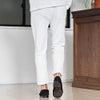 同色の糸で織り上げた立体的なチェック柄が上品に浮かび上がる、洗練されたアンクルパンツ。
