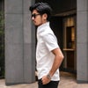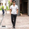 襟元が開いたスキッパータイプのポロシャツなので首元をスッキリと綺麗に見せてくれます。