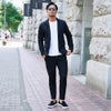 千鳥ニットソーテーラードジャケットと合わせれば、統一感のあるセットアップスタイルも楽しめ、単体でも幅広いコーデにマッチします。