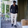ハーフジップ仕様は、開けてラフに着こなすのはもちろん、閉めればすっきりとした印象に。