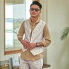 コットン×リネンの2つの素材を混ぜ合わせ織り上げた天然素材のベスト。