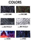 ブラックカモフラージュ/カーキカモフラージュ/ブラックペイズリー/ホワイトペイズリー/タイダイ/スペース
